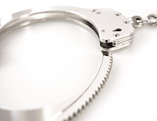 Hochwertige Fußfesseln aus rostfreiem, vernickelten Stahl mit einer 40 cm langen, verschweißten Kette zum Einschränken der Bewegungsfreiheit beim Gehen.